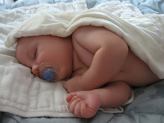 It is 90+ degrees today and the fan isn't cutting it at all. The boy was crying no matter what I did until I had the brilliant idea to wet down a cloth diaper and lay it on him. He started to coo adorably with relief and promptly fell asleep.